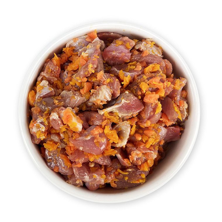 С курицы или индейки. Эти виды мяса более диетические и лучше усваиваются организмом четвероногого. Вы можете исключить красное мясо и рыбу при заказе питания у нас на сайте. Таким образом мы будем привозить вам сбалансированное питание из белого мяса – курицы и индейки. Ветеринарами-диетологами крайне не рекомендуется кормить животного только рыбой. Пожалуйста, обращайте на это внимание при заказе натурального питания How to Pet.